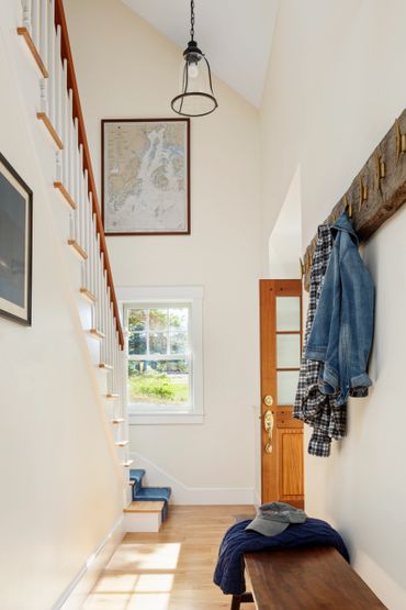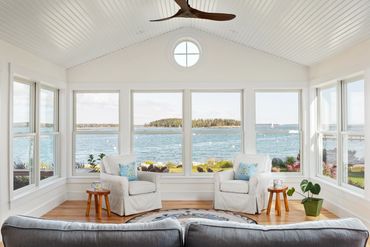 This classic Maine cottage settles comfortably into its beautiful coastal site with its low scale and subtle exterior color palette. With the ocean just steps away, the expansive waterside openings capture wide ranging views across the stunning harbor and bath the cozy interior spaces in light. The main bedroom and living spaces move seamlessly onto waterside decks to soak in Maine's beauty in all four seasons.